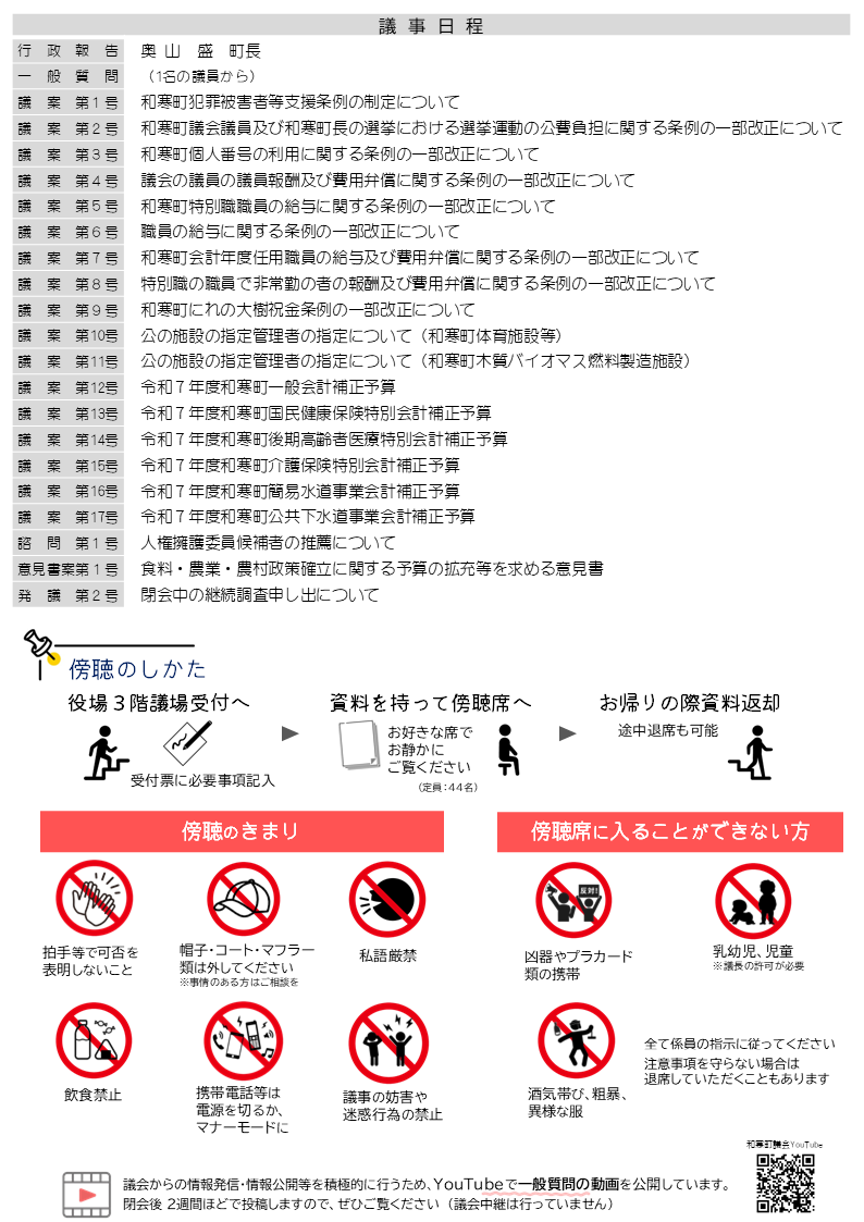 令和7年第4回 町議会定例会のお知らせ