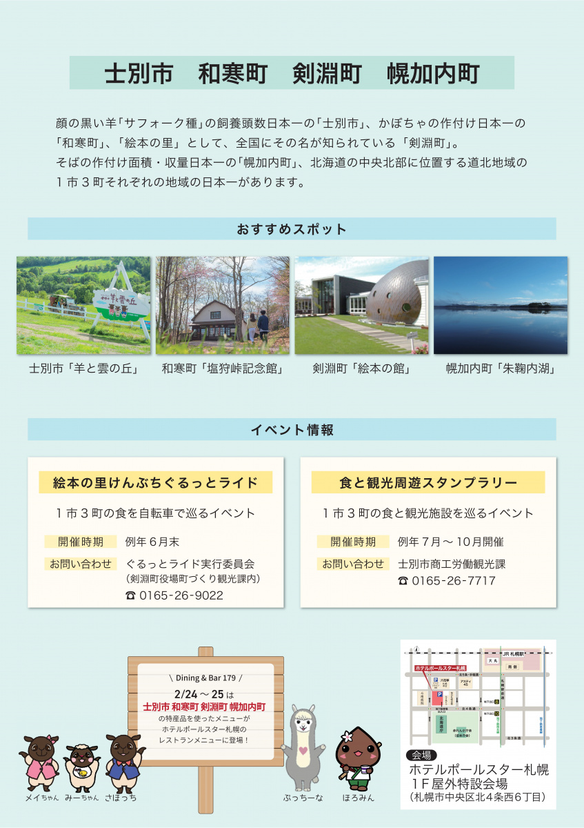 1市3町 士別・和寒・剣淵・幌加内、ホテルポールスター札幌で合同観光物産展を開催します!