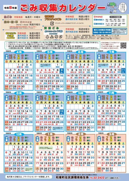 令和8年5月9日、7月11日、9月12日 ・戸別収集のため役場住民課へ電話予約が必要です。 ・一週間前までにご連絡ください。 ・1回5品までとなっています。 ・重量10㎏につき300円の手数料がかかります。 |